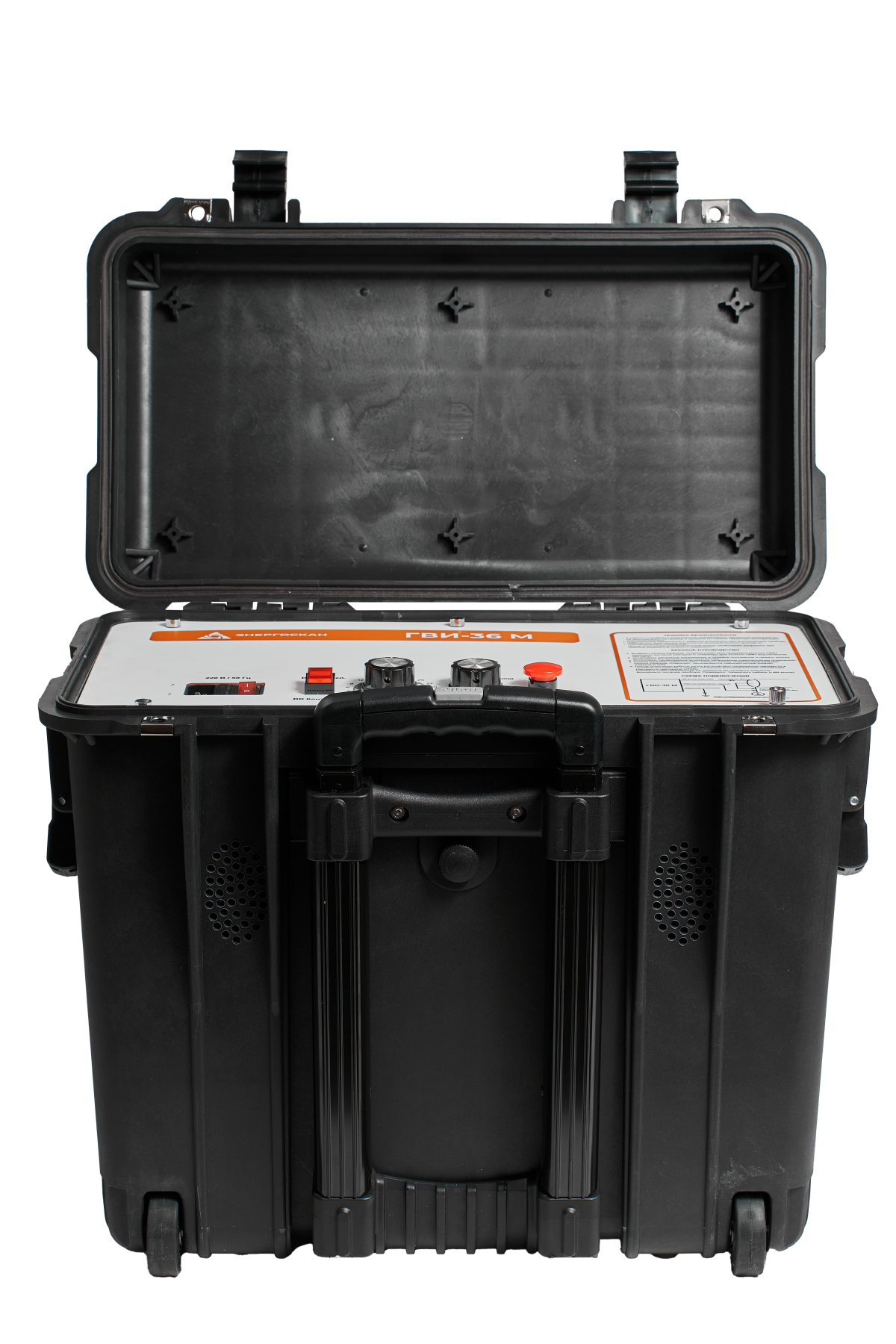 Генератор выполнен в защищенном пластиковом кейсе с колесиками и ручкой для транспортировки. Малые габариты и вес генератора позволяют с удобством осуществлять транспортировку устройства, в том числе и в труднодоступные места: шахты, тоннели метро, здания и места куда могут проехать только снегоболотоходы.