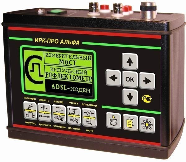 ИРК-ПРО Альфа – мост + рефлектометр. Оснащен графическим дисплеем, удобным меню, вольтметром, генератором. Универсальный поиск повреждений (мостовой и рефлектометром), плановые измерения.
